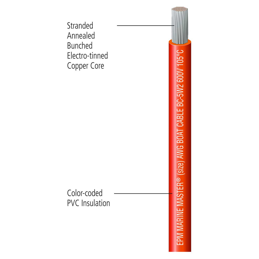 Marine Master Tinned Wire, Red, 10 AWG, 8 Feet