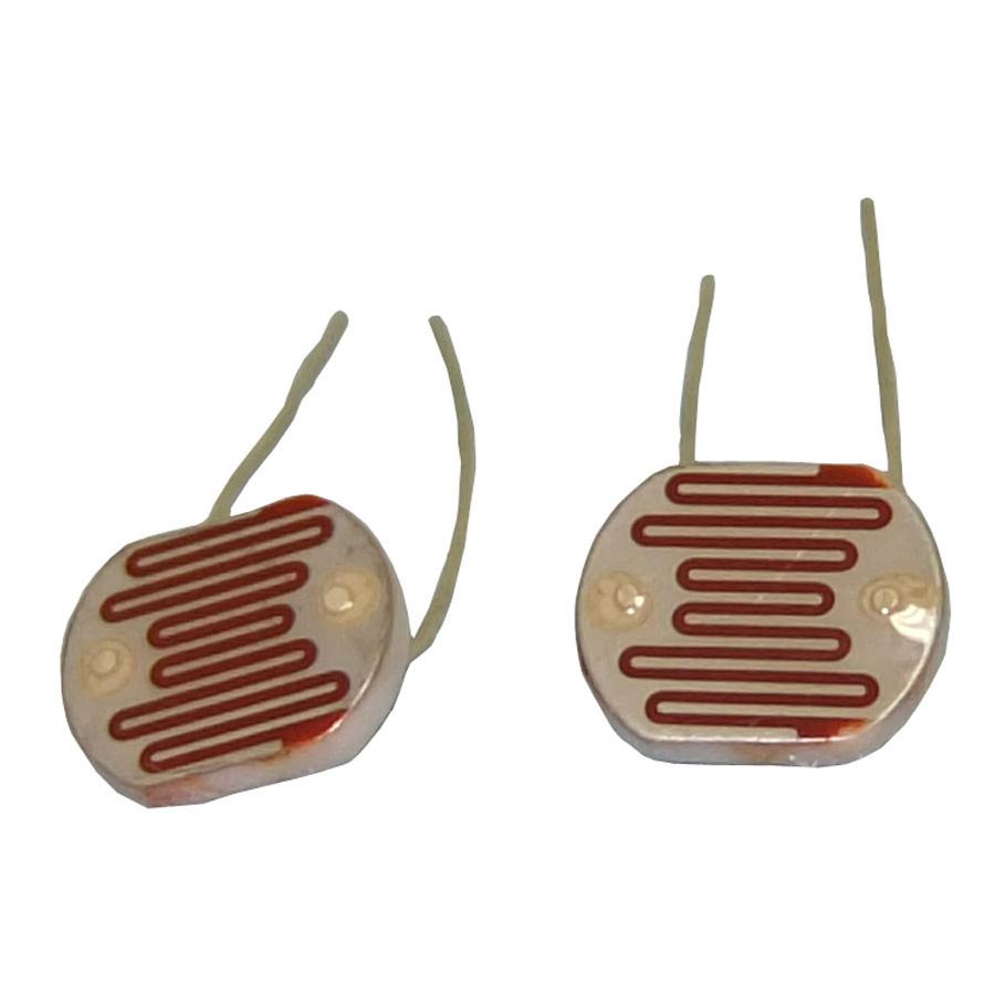 The cadmium sulfide photo cell has a high resistance in darkness but resistance is quite low when in light of 100 foot-candles or more. A typical use is for switching on lighting after dark; also used in alarm systems, exposure meters, flame detectors, opto-couplers etc.. The cells have a dark resistance of 5,000 ohms and 300 ohms in bright light (of 100 cds. or more).